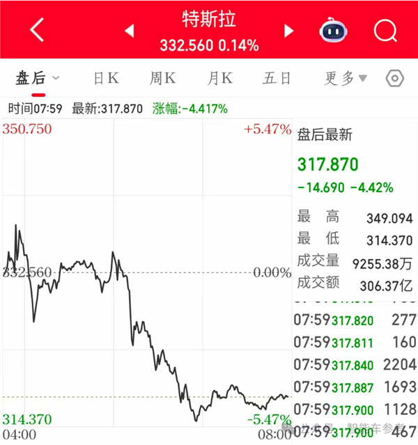 这份关键数据全线下滑的财报,甚至更惨。特斯拉在盘后交易中的股价下跌超4%,